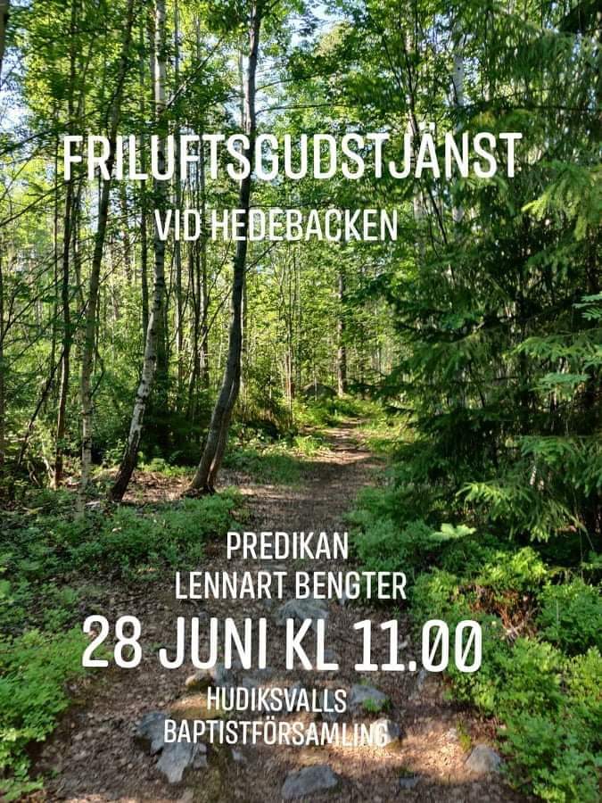 Söndag 28 juni kl 11.00 Friluftsgudstjänst vid Hedebacken. Predikan av Lennart Bengter.