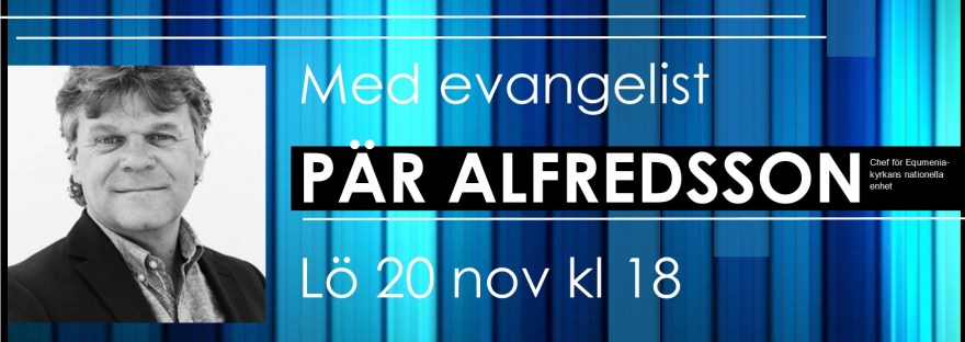 Lördagen och söndagen den 20-21 november välkomnar vi till en helg med Pär Alfredsson, riksevangelist från Equmeniakyran. Kom med en förväntan på att Gud ska möta dig och ta gärna med en vän!