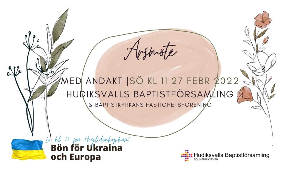 26/2 Lö 10.00 Ekumenisk bön på Högliden. Vi ber särskilt för Ukraina och Europa!