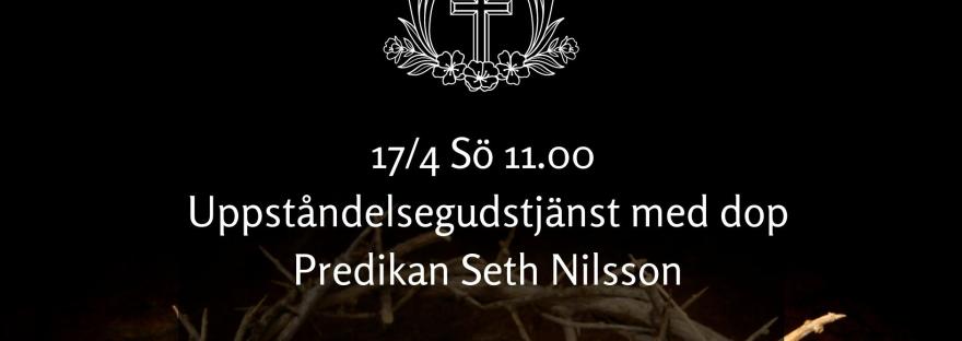 Välkommen till Påskdagsgudstjänst med Dop! Predikar gör Seth Nilsson. Sång och musik av Lennart, Gudrun och Eva, samt Berith. Söndagsskola. Servering efter gudstjänsten. Välkommen!