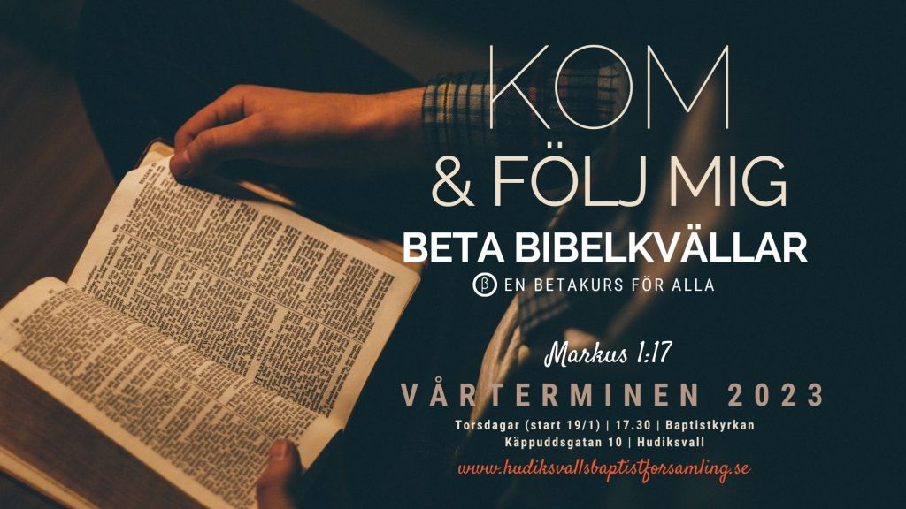 Nu har vårens Beta Bibelkvällar börjat igen! Vi ser fram emot en givande vår med många intressanta och viktiga ämnen som berör. Kvällarna är både för dig som är ny i tron eller gått en Alphakurs, men även dig som varit kristen och i en församlingsgemenskap hela livet! Under kursen finns även möjlighet till samtal och frågor.