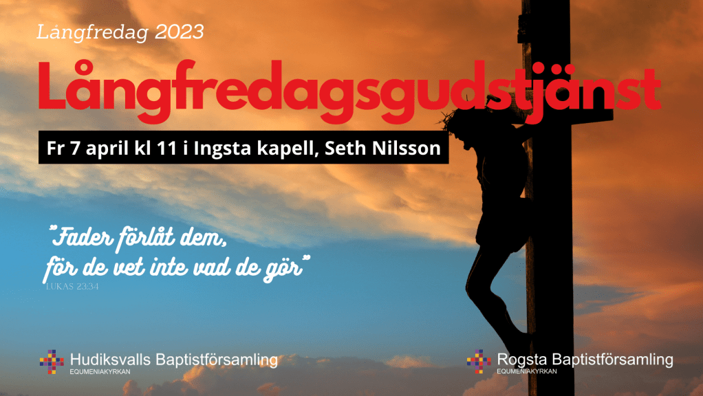 På långfredagen är du välkommen till Rogsta Baptistkapell, där Seth predikar. Den som inte har bil, eller – tvärtom – har plats i bilen, kommer kl 10.30 till kyrkan för samåkning.