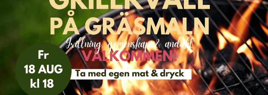 Nu på fredag den 18 augusti kl 18 träffas på Gräsmaln för en mysig grillkväll med grillning, gemenskap och andakt. Du tar själv med dig det du vill äta/grilla. Samåkning från Baptistkyrkan kl 17.45. Välkommen! ![]()