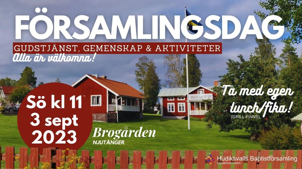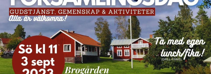 På söndag åker vi till vackra Brogården i Njutånger för höstens församlingsdag! Det blir en härlig dag med gudstjänst, gemenskap och aktiviteter. Alla är hjärtligt välkomna! (Även du som inte är medlem i församlingen.) Vi börjar kl 11 och håller på tills vi känner oss nöjda.