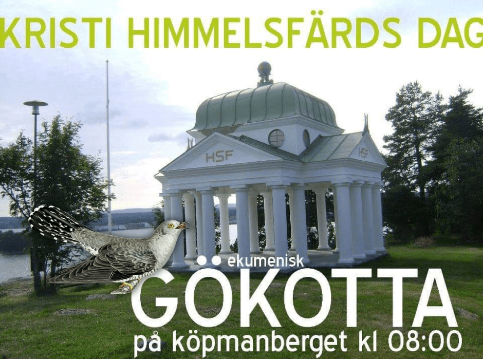 Traditionsenligt samlas alla kyrkor i Hudiksvall till Gökotta kl 08.00 på Köpmanberget vid Kristi Himmelfärdsdag. Gökottan är i form av en enkel gudstjänst ute i det fria, med sång, musik och en kortare predikan. Detta år ansvarar Baptistförsamlingen för programmet. Du är hjärtligt välkommen! – Ta med fikakorg och något att sitta på.