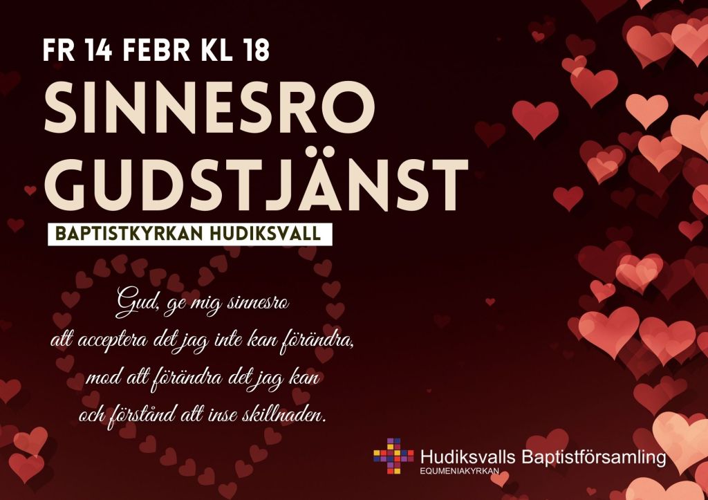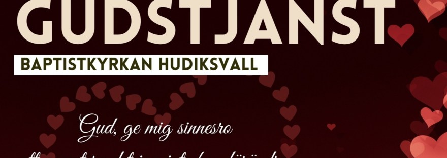 Vi förgyller Alla Hjärtans dag med att ha sinnesrogudstjänst i Baptistkyrkan nu på fredag, den 14 februari kl 18. Alla är välkomna! Efter gudstjänsten bjuds det på fika och kärleksfull gemenskap.